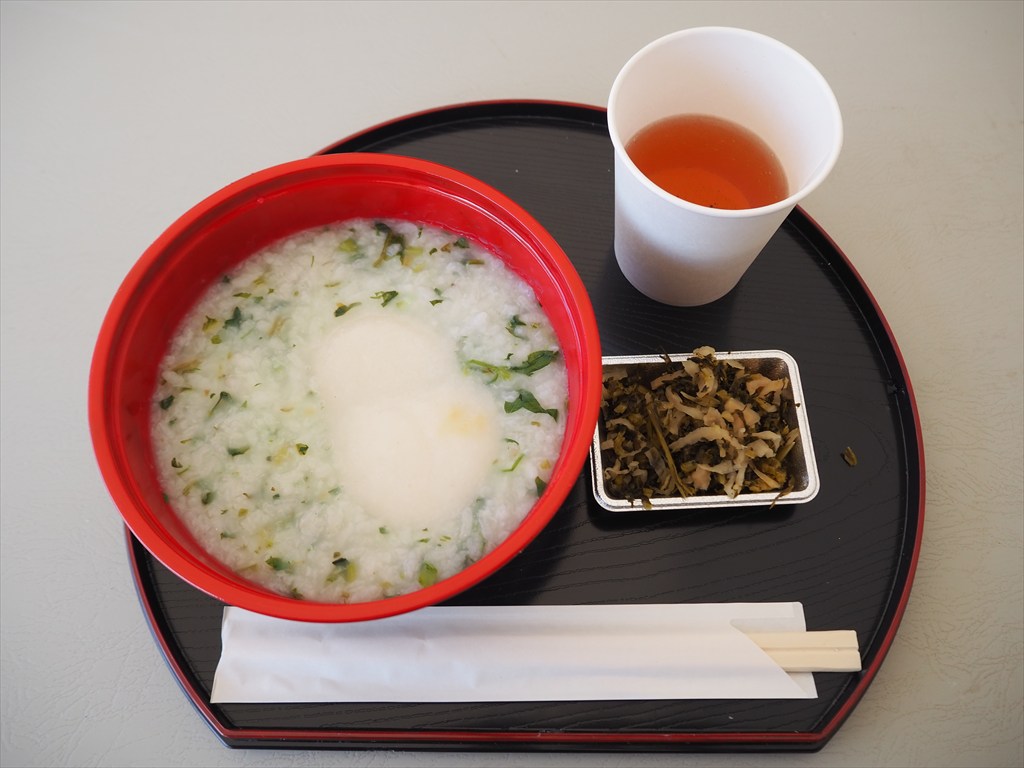 上賀茂神社の七草粥は500円でいただけ、ボリュームもたっぷり。お餅も入っており、しっかりお腹が満たされるお粥でしょう。上賀茂特産のすぐきのお漬物も添えられ、お粥と一緒に食するとちょうどよい塩加減となります。味が物足りない方のためにも食卓塩も用意されていますので、お好みでかけていただけます。機会がありましたら、ぜひ食してみてください。