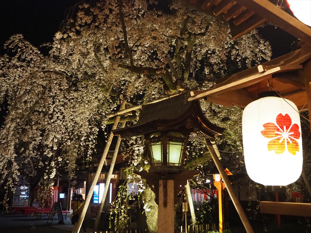 平野神社では桜の時期にライトアップが行われています。以前より人出は少なくなり、落ち着いた雰囲気のライトアップです。春は寒暖差が大きく、昼間は暖かくても夜には冷えてきますので服装にはご注意ください。ほのかな明かりに浮かぶ夜桜は、やはりとても美しいです。