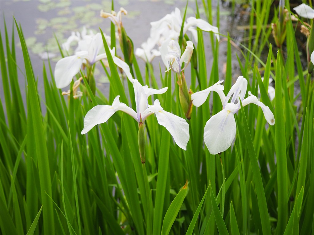 洛北の深泥池(みどろがいけ)に白いカキツバタ(杜若)が咲いていました。