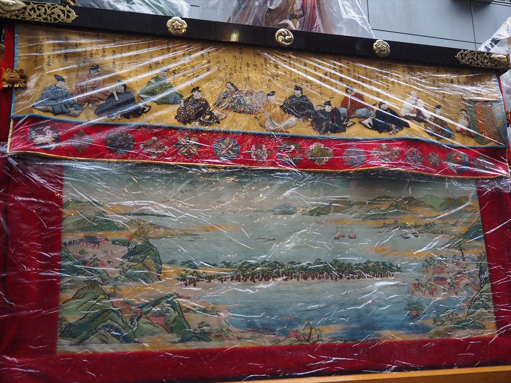 巡行の様子は改めてご紹介しますが、今回は出発前の山鉾の写真を掲載します。出発前は特に小型の山が美しく、「動く美術館」とも称される山鉾の細部までじっくりと観察することができます。ただ、今年は雨予報のため、ビニールで覆われたり、貴重な懸装品を使用しなかったところも多くありました。