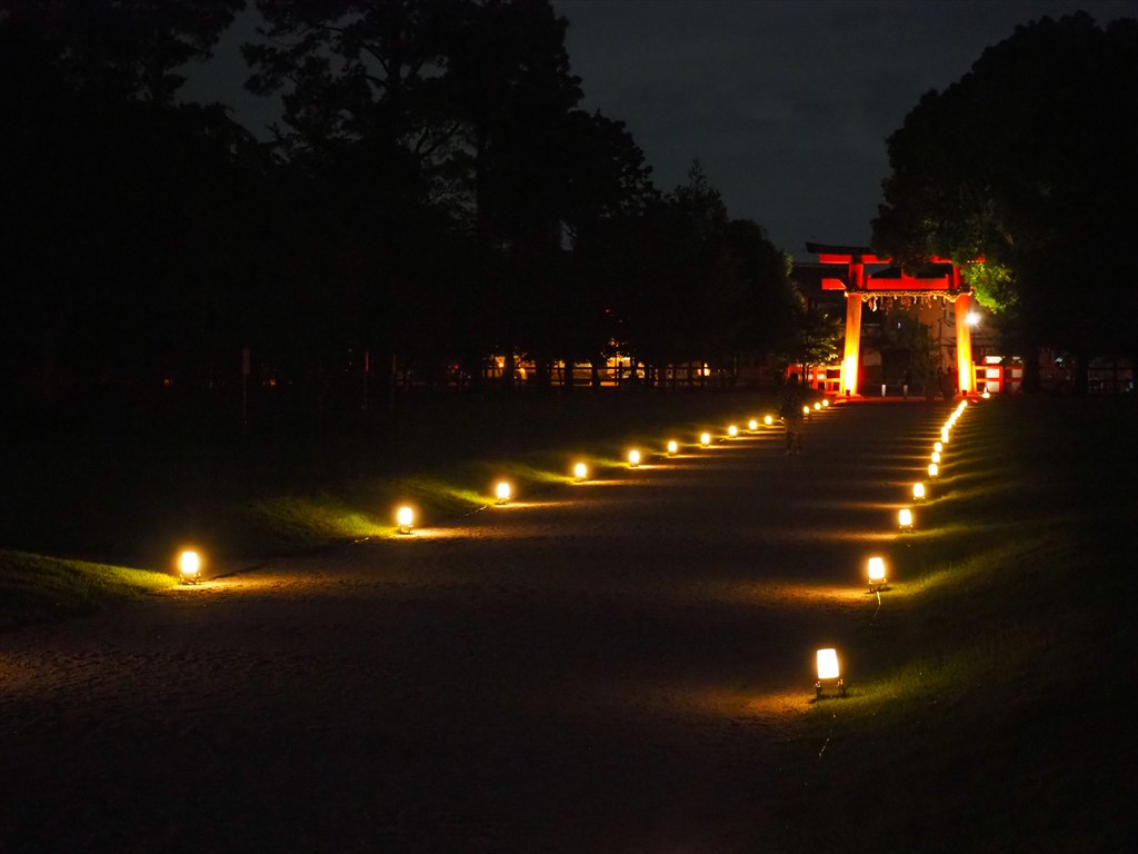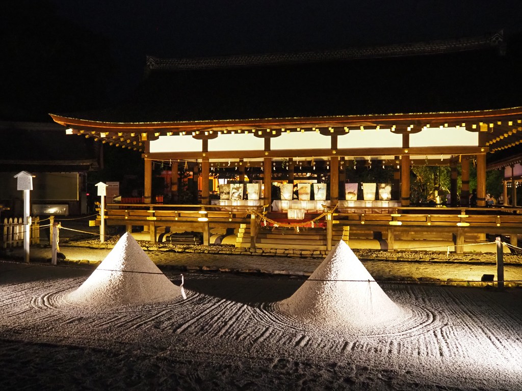 上賀茂神社では7月23日まで「夏のライトアップ ~龍神詣りと足つけ夕涼み~」と題した行事が行われています。