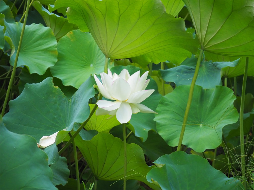 蓮はおよそ1億年前、まだ恐竜がいたときに現れた古代植物で、蓮の花の中央が平らなのは、最初に花粉を運ぶ役割を担ったコガネムシの仲間が動きやすいためだとか。めしべがある部分はやがて実をなして、実が落ちた後は蜂の巣のように見えます。そこからハチスと名付けられたものが縮まってハスになったといいます。