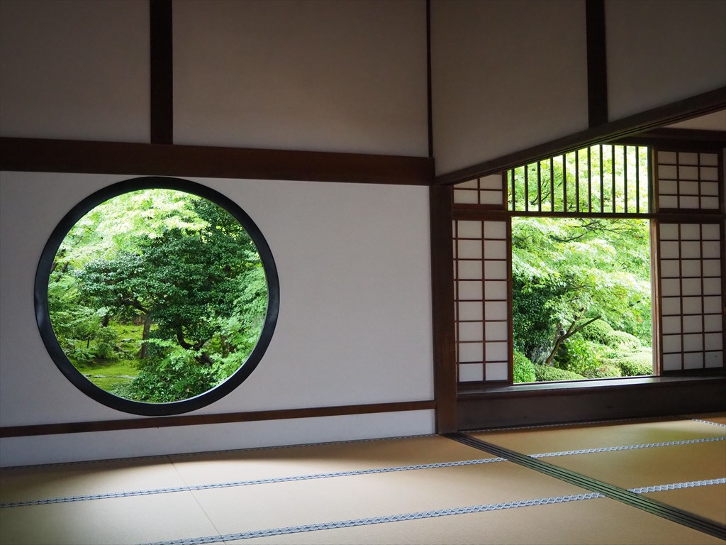 窓の素晴らしいところは、窓が切り取る景色を見る者の自由に変化させることができることです。四季折々の花木の移ろいや天気でも印象が変化し、一日の中でさえ時々刻々と変わりゆく様を感じることができるでしょう。まさに生きている絵画であり、たとえ以前と同じ風景のように見えても、それはもう違う光景。見る者に問いかけるかのような「窓」が禅寺によく見られるのは、まさに精神修行の一環なのだろうかと、あれこれ考えてしまいます。