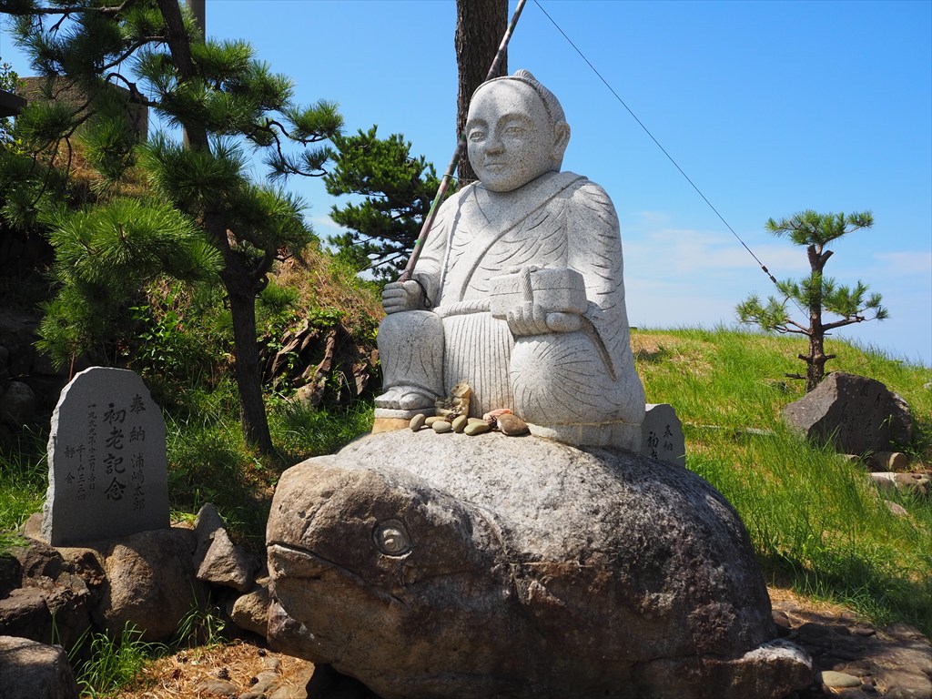 島児(嶋児)神社には、浦島太郎と亀の像が奉納されており、インパクトがあります。神社の脇には明治期に浜に現れて亡くなったウミガメが葬られてもいます。7月末に行われる浅茂川水無月祭では亀神輿が登場するのもユニークでしょう。