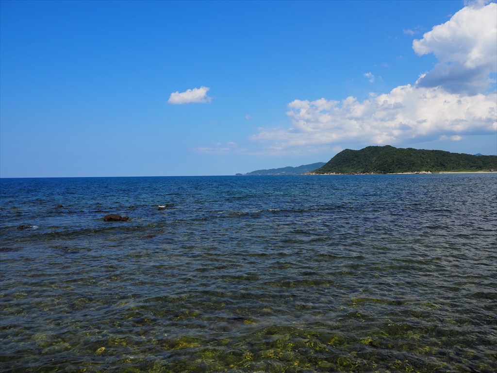 八丁浜は8月24日までの海水浴シーズンが過ぎ、人影はほとんどありませんでしたが、この日もまだ海に入りたくなるような暑さでした。八丁浜はその名の通り、美しい砂浜が続きます。外海は特に青さが際立ちました。八丁浜シーサイドパークの駐車場があり、海を近くで感じられる場所です。