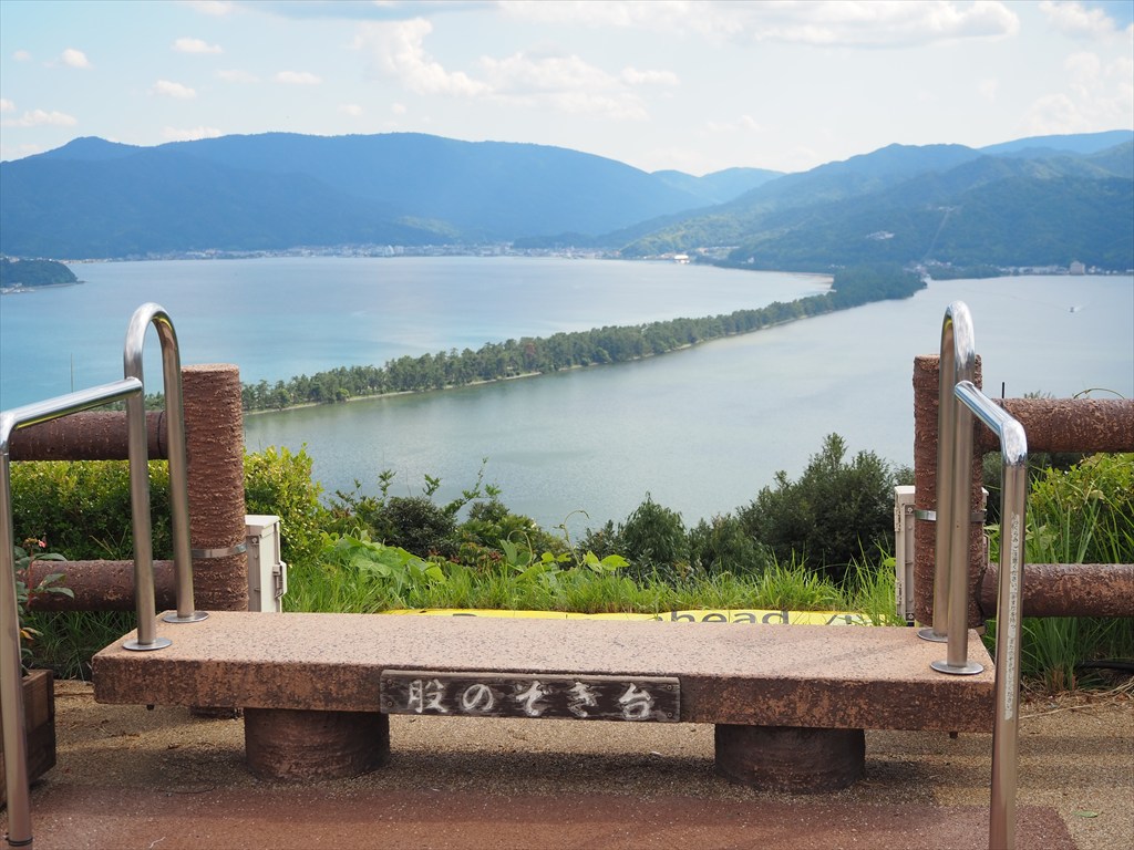 天橋立は海の中にのびた長大な砂州で、高台に上れば、見事な眺めを望むことができます。南の京都丹後鉄道側が天橋立ビューランド、対岸の北側が傘松公園です。股のぞきは天橋立ビューランドからもできますが、その発祥の地は傘松公園の上の高台とも言われています(西の大内峠との説も)。