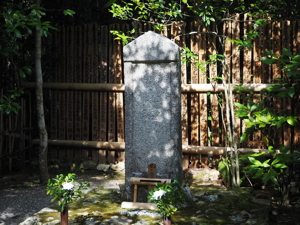 江戸時代のはじめ、芸術家として活躍をした本阿弥光悦は、徳川家康より鷹峯に土地を与えられました。光悦は一族縁者をはじめ、種々の工芸にたずさわる多くの職人を招いて芸術村を営み、多くの作品を世に残しています。その後、光悦の死後に、本阿弥家の先祖供養として設けられていた位牌堂が光悦寺として寺に改められ、境内には光悦の墓もひっそりと残されています。