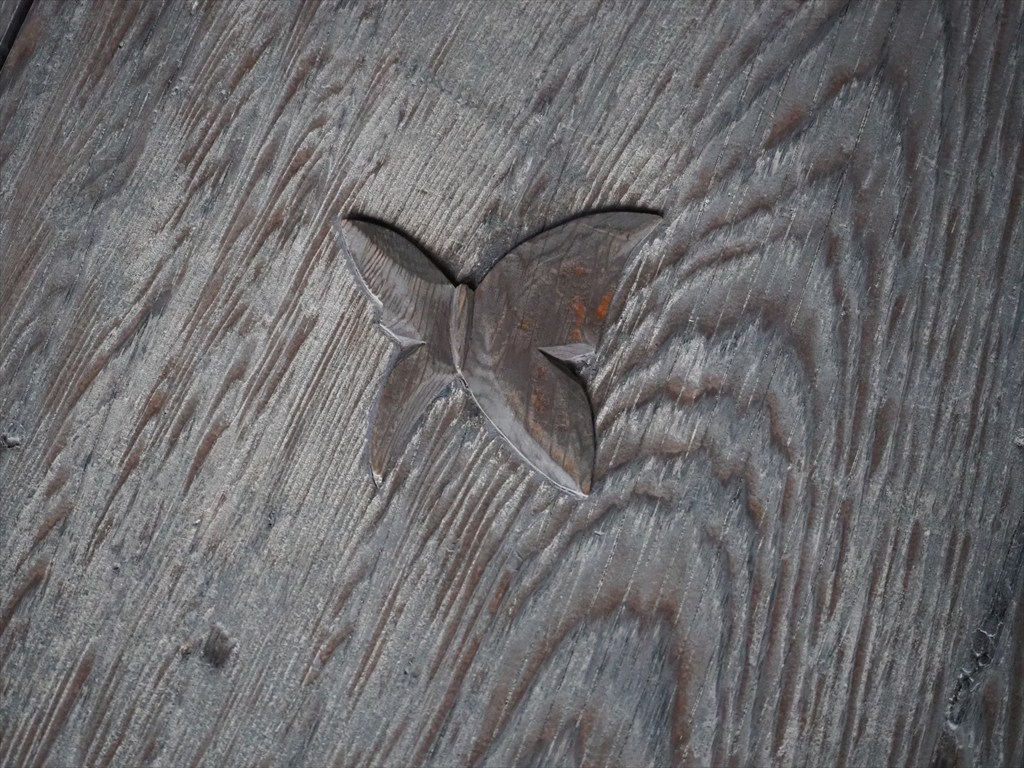 方丈と足利将軍の木造を祀る霊光殿は、近年修復が終わりました。方丈は福島正則ゆかりの妙心寺の海福院に1616年に建てられたもので、1818年に移築されました。修復では床に「埋め木」が嵌められました。傷んだ部材を切り取って嵌め替えるもので、所々に蝶やイチョウの葉といったデザインもあるのが素敵です。埋め木を平らにはせず、盛り上げているのも特徴でしょう。