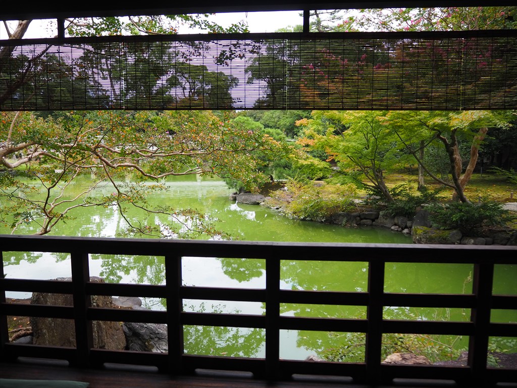 拾翠亭(しゅうすいてい)は、公家の九条家の現存する茶室で、かつての一流公家の茶室に上がり、素晴らしい風景を眺めることができます。勾玉形とも呼ばれる九条池に臨む2階建ての眺めが特徴です。京都御苑の南西付近にあり、駅から近い一方で茂みに囲まれてやや分かりにくいため、御苑の中でも穴場スポットといえるでしょう。