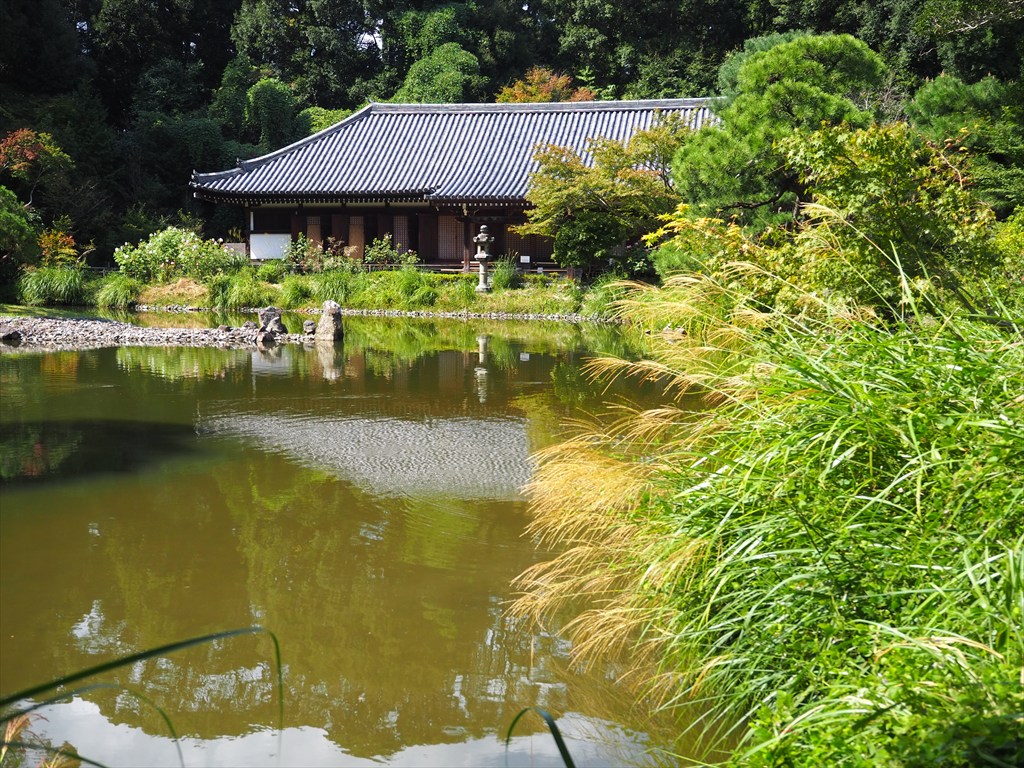 浄瑠璃寺の庭園は実は全国でもたった36カ所しかない「特別名勝」に指定されている貴重なお庭。境内で有料なのは阿弥陀堂の拝観のみで、お庭は自由に歩かせていただくことができます。風景が殊のほか美しいという特別名勝のお庭の眺め。往時は、阿弥陀堂の扉が開き、池に映る阿弥陀様のお姿に手を合わせていました。秋分の日には今でも扉が外されて、阿弥陀仏が池に映るそうですが、一般には非公開です。その素晴らしい光景が紹介されているNHKさんの動画がありました。ぜひご覧ください。
