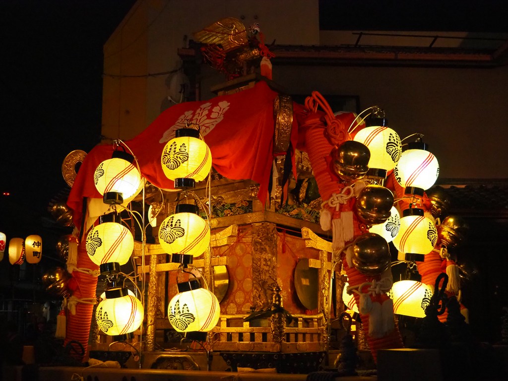 大松明は中書島駅の西にある三栖会館に置かれ、19時になると三栖神社の御旅所(金井戸神社)で神事が行われた後、境内から天武天皇の神霊がお乗りになった神輿が出され、三栖会館にある大松明の元へと巡行していきます。提灯が灯された神輿は幻想的で、神輿を先導する際に灯される手持ちの松明も、独特の雰囲気があります。