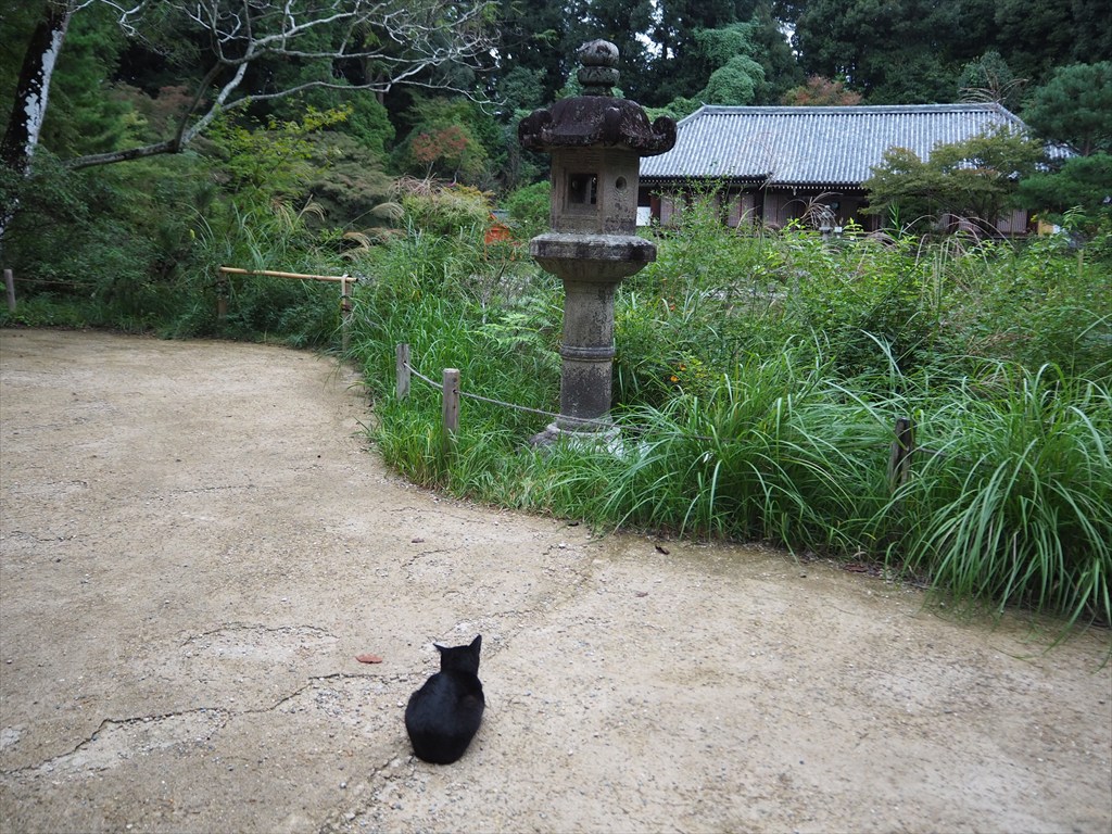 浄瑠璃寺では、優しいピンクの色彩の芙蓉の花はまだ阿弥陀堂を飾っていました。参道には萩や藤袴も残っています。また境内には猫も多く、あちこちで自由に動き回っていました。浄瑠璃寺へは、JR加茂駅からコミュニティバスのほか、JR奈良駅・近鉄奈良駅からのバスが「お茶の京都 木津川古寺巡礼バス」として、10月11日~12月7日の土日祝限定で運行しています。バスはいずれも本数は多くはないため、時間をよくご確認ください。