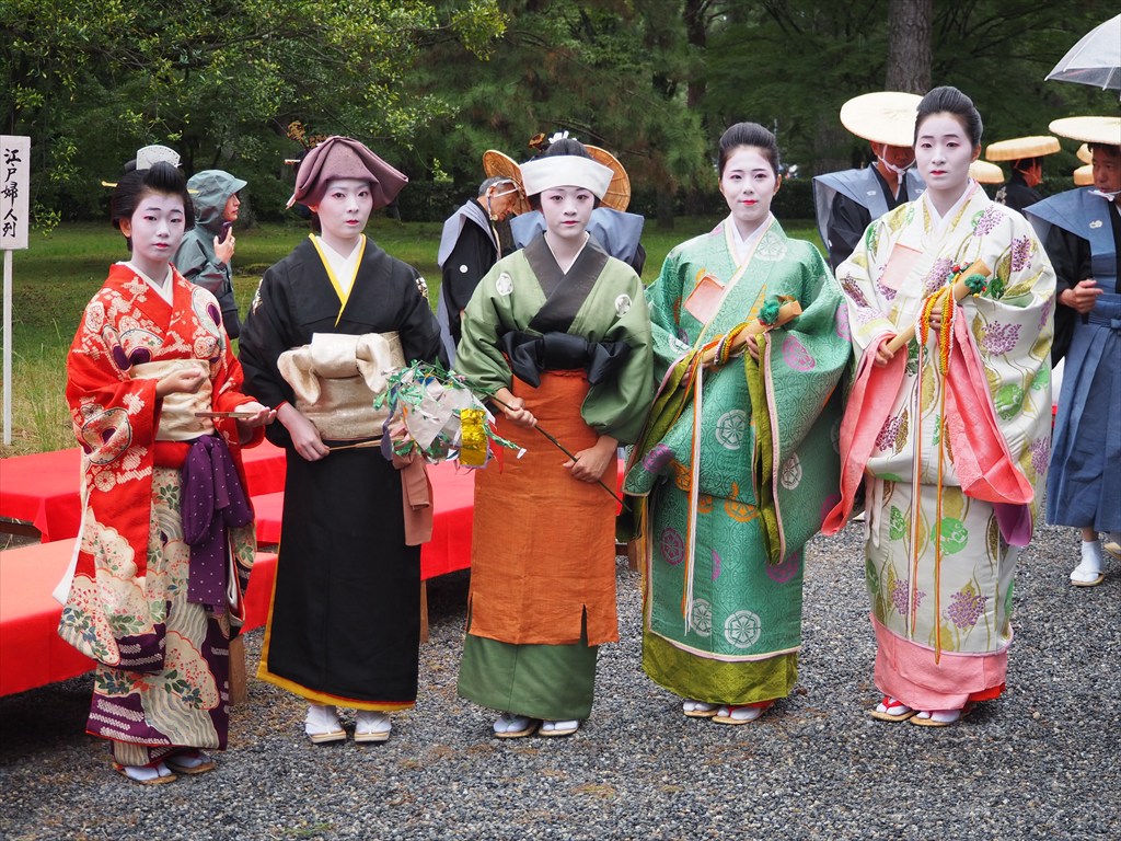 明治維新から延暦時代まで時代をさかのぼりながら進む壮大な行列で、20列、総勢約2000名が参加し、行列が通過するのにかかる時間は約2時間もあります。列を支えているのは主に京都市民と京都の学生などのアルバイトの皆様たち。まさに京都市民にとっての一大イベントでもあります。