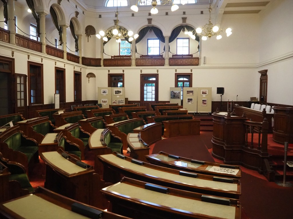 京都府庁は明治37(1904)年に竣工した旧本館が、レンガ造りのレトロな外観で知られ、その中には春には美しい桜が植わっています。創建時の姿をとどめる現役の官公庁建物としては日本最古のもので、現在も会議室や執務室として使用されています。旧議場や旧知事室は火曜日~金曜日と第1・3・5土曜日に無料で公開されていますので、訪れていただくと往時の雰囲気を感じられるでしょう。