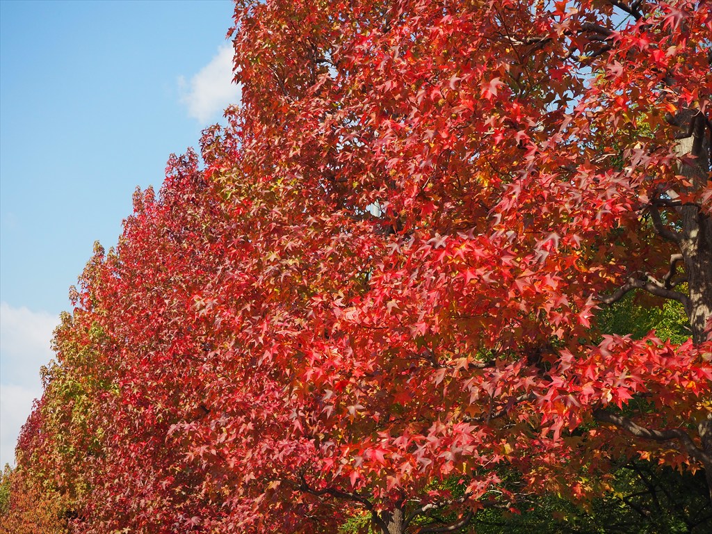 モミジバフウは、北アメリカ原産のカエデによく似た大きな葉を付ける高木で、日本には大正時代に渡来し、現在は街路樹でたまに見られます。実はカエデとは別の分類の木だそうですが、楓という漢字が「カエデ」とも「フウ」とも読めたり、葉の形がカエデによく似ているので仲間と感じるのも無理はありません。