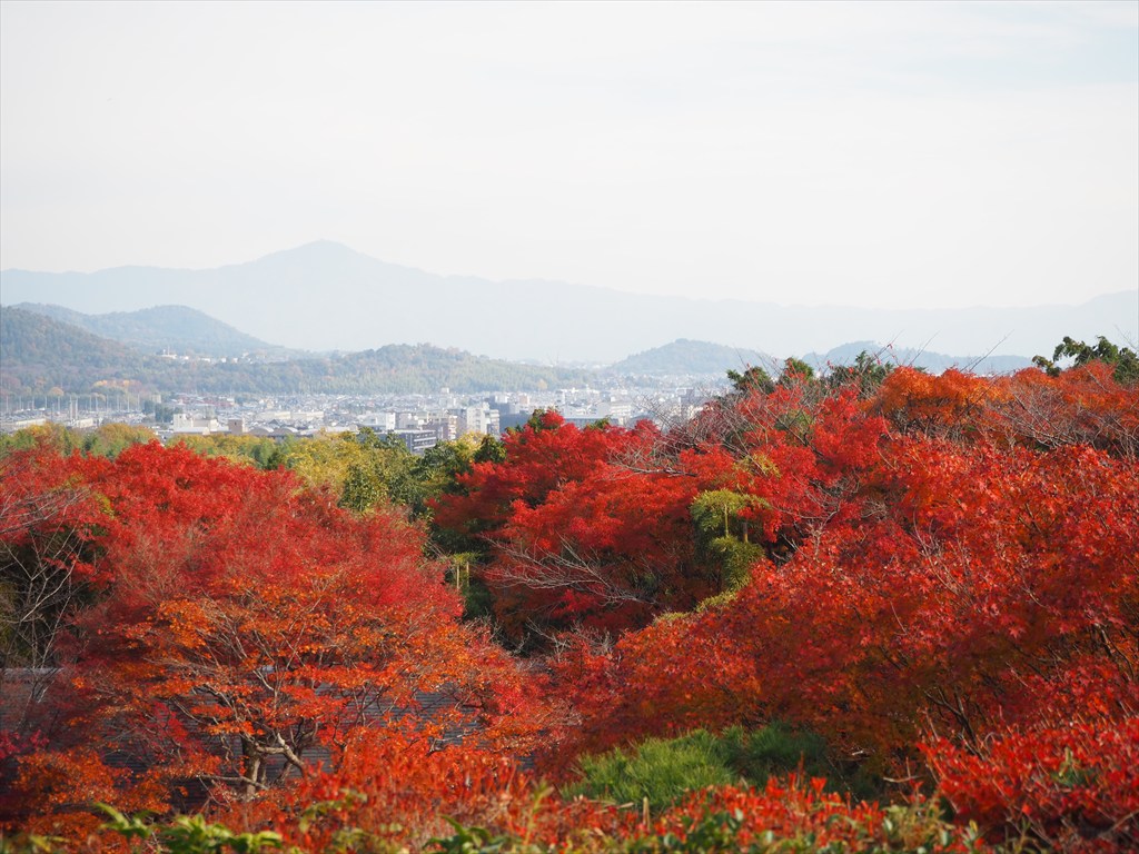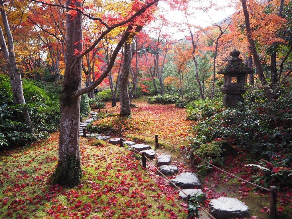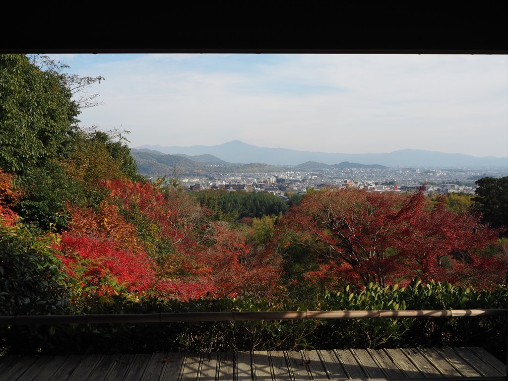 庭園は紅葉が最盛期を迎えており、大乗閣周辺からは東向きの眺めも楽しめます。個人的には嵐山方面を振り返った眺めが好みですが、晴れていると逆光になるため、雨や曇りの日がおすすめです。