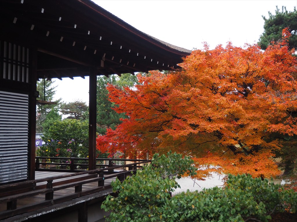 かつては壮大な伽藍を誇りましたが、応仁の乱でほとんどの建物が焼失し、江戸初期に再建。現在でも御所風の建物が残り、小刻みに曲がる“村雨の廊下”で各建物が繋がれています。