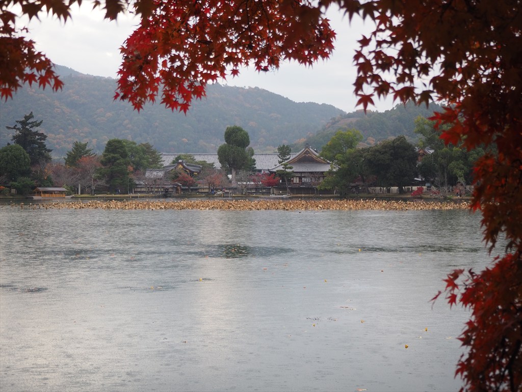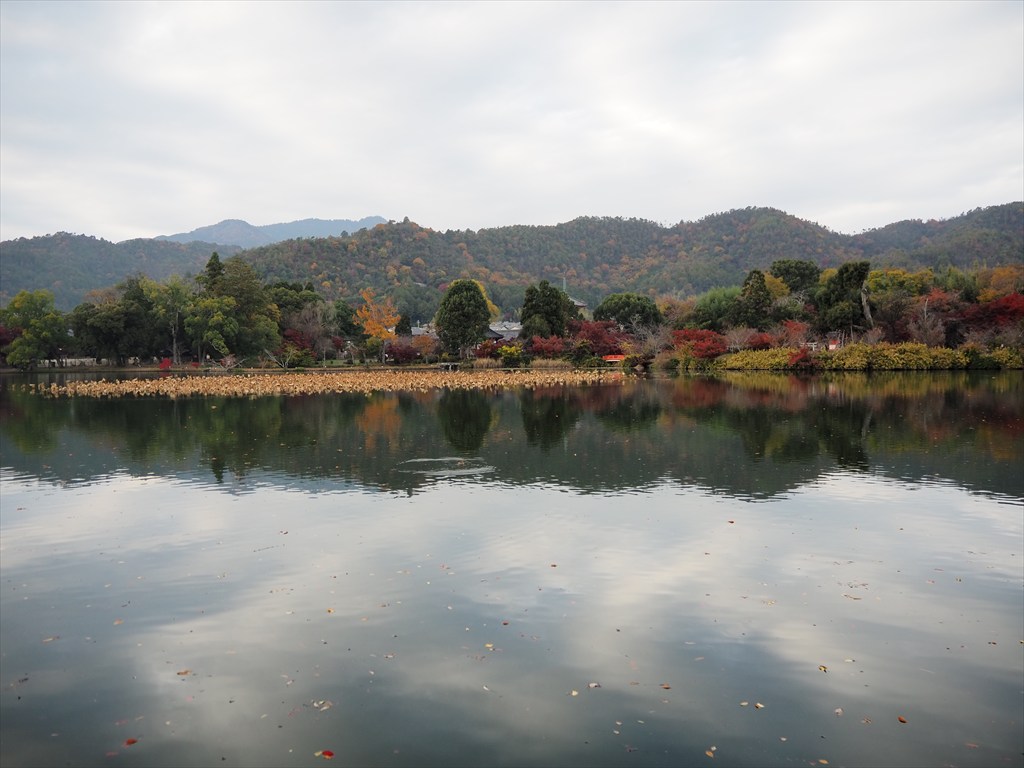 境内の紅葉は見ごろで、大沢池周辺も綺麗な場所がたくさんありました。池から眺める風景に近代的なビルなどはほとんど見えず、山並みの美しさが印象に残ります。お時間のある方はぜひ、ぐるりと一周をしてみてください。