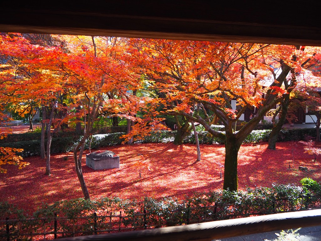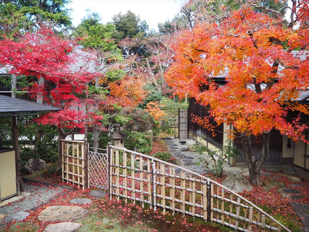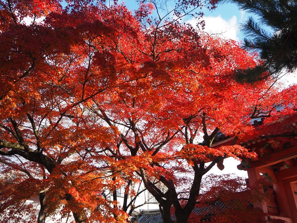 現在は、立派な本堂や三重塔の周囲を美しくカエデが彩る寺として知られ、秋の紅葉の頃には多くの人で賑わいます。4日の時点では、紅葉のピークは過ぎていますが、三重塔裏や門前、本堂の裏でまだ見頃となっています。有料拝観では、書院や涅槃の庭を見学できこちらもおすすめ。また、境内の諸堂も、善光寺如来や県井観音、新長谷寺に石薬師、穴の開いた鐘に、木喰正禅の阿弥陀露仏など、京都に詳しい方ほど興味深いものばかりだと感じると思います。ぜひ、ゆっくりと散策をしてみてください。
