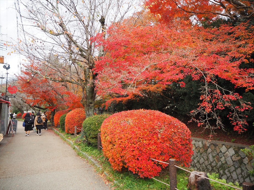 12月に入り紅葉は終盤を迎えています。場所を選べばまだ楽しめるところもあります。海外の方からも人気の場所が「哲学の道」。熊野若王子神社付近から疏水分線に沿って続く散策路で、春には関雪桜と呼ばれる桜が咲くことで知られます。今から100年ほど前に、画家の橋本関雪が妻のヨネ夫人とともに疏水沿いに桜を寄贈した経緯があることから、哲学の道沿いの桜はそう呼ばれています。