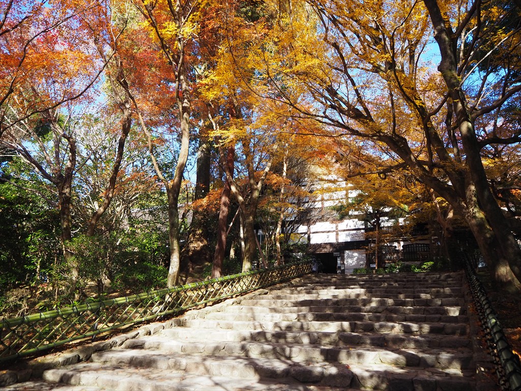 先日の寒波と風で、京都の紅葉は散りが進んで終盤を迎えていますが、場所を選べばまだ楽しむことができます。世界遺産の龍安寺では、境内奥のカエデが今年は黄色く色づいて大変綺麗でした。