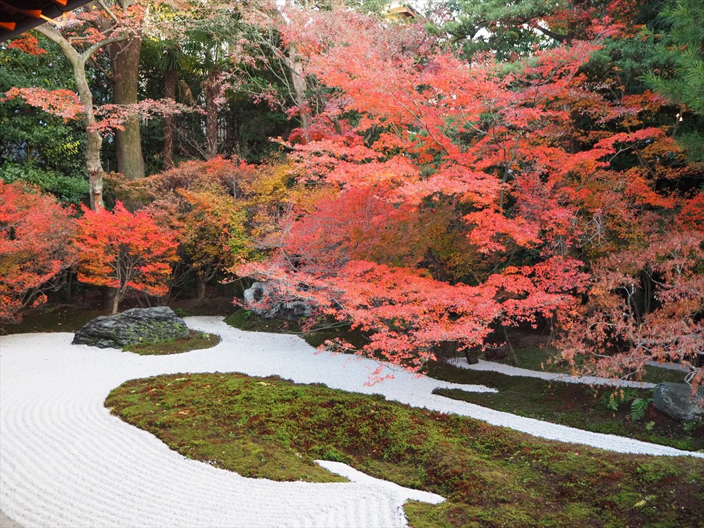 庭園は中根庭園研究所によって整備され、境内を入った前庭は「九華青蓮(きゅうかしょうれん)」と名付けられ、阿波青石を蓮の花に見立てた石組が特徴。今年は紅葉が乾燥が強いまま、葉が枯れてしまった状態で残念でしたが、昨年は綺麗な紅葉が見られました。