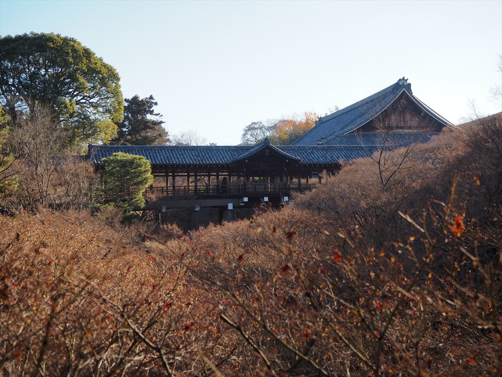 冬の時期はカエデも葉を落とし、枝ぶりが際立ちます。通天橋を囲む枝もこれはこれで見事ではないでしょうか。冬の禅寺は修行の場という雰囲気も高まって、個人的には好きな空間です。