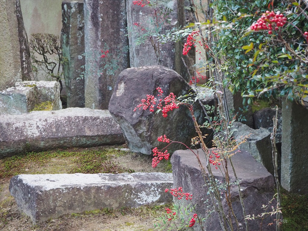 石清水八幡宮が初詣で混雑する八幡市。男山の麓にある泰勝寺(たいしょうじ)が三が日の9時~15時で特別公開されています(500円)。静かに過ごせる穴場と言えるでしょう。大正時代に創建されたお寺には松花堂昭乗の墓があり、七種類の南天が植えられた「南天(難転)招福の庭」は新年にふさわしく、「幸運月光菩薩」も公開されています。穏やかな時間を過ごすことができました。