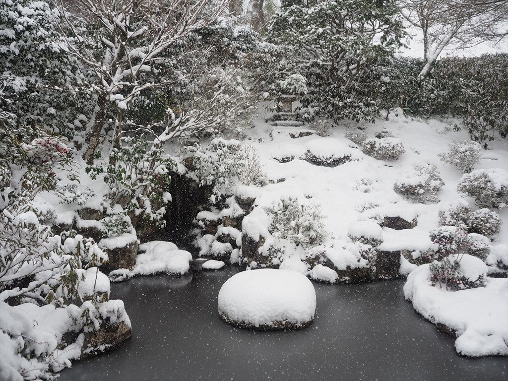 実光院にはもうひとつ庭園があり、通常は歩いて散策ができ、晩秋から春にかけてチラホラと花を咲かせる珍しい「不断桜」があることでも知られます。今回は雪の量が多かったのもあってか、お庭の散策は出来ませんでした。