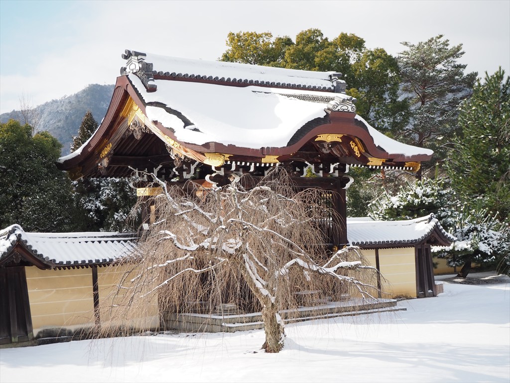 2月8日は前日夜から雪が積もり、美しい雪景色を求めて早朝から訪れました。御所風の境内は、在りし日の御所はまさにこういった雰囲気であったろうかと想像させてくれます。
