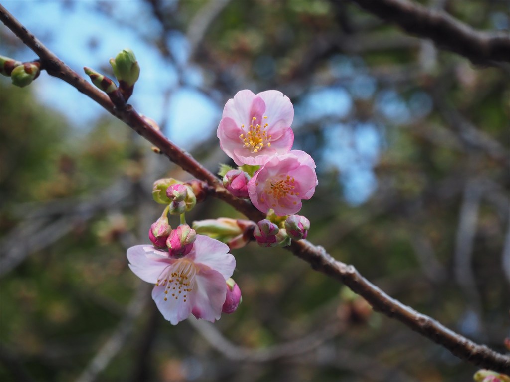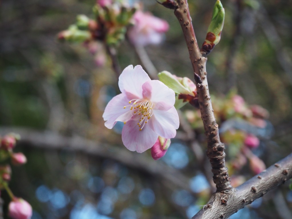 18日は、三条大橋の南西にある河津桜を訪ねてみると、花が開いていました。河津桜は木によって開花時期の差が大きく、まだ蕾のところもあるでしょう。京都では東寺の大師堂北の河津桜の開花も早く、一足先に春の雰囲気を感じさせてくれているはずです。