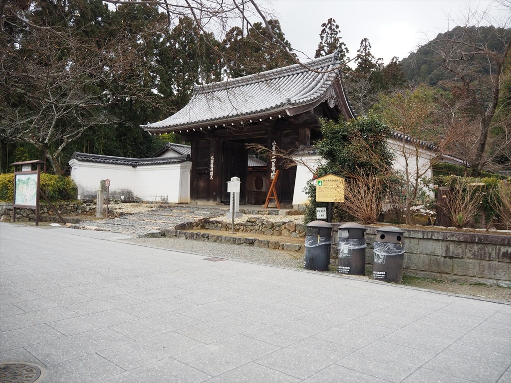 二尊院は、天台宗の慈覚大師・円仁によって平安初期に創建された寺院で、正確には小倉山二尊教院華台寺といい、鎌倉時代の釈迦如来像、阿弥陀如来像の二尊をお祀りするところから、二尊院の名がよく知られています。入り口の立派な総門は、伏見城の薬医門を移築したものと伝わり、そこから続く一直線の参道は「紅葉の馬場」と称されて、晩秋には多くの参拝者で賑わいます。また、これから桜の時期には桜の馬場とも呼べる場所になります。