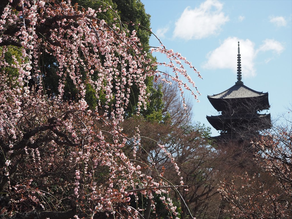 本格的な桜シーズンが近づいて来ましたが、東寺では梅と河津桜が先んじて綺麗になります。。14日に訪れると、梅は終盤ながらまだ綺麗な木もあり、五重塔との取り合わせが絵になります。多くの観光客が写真を撮っていました。