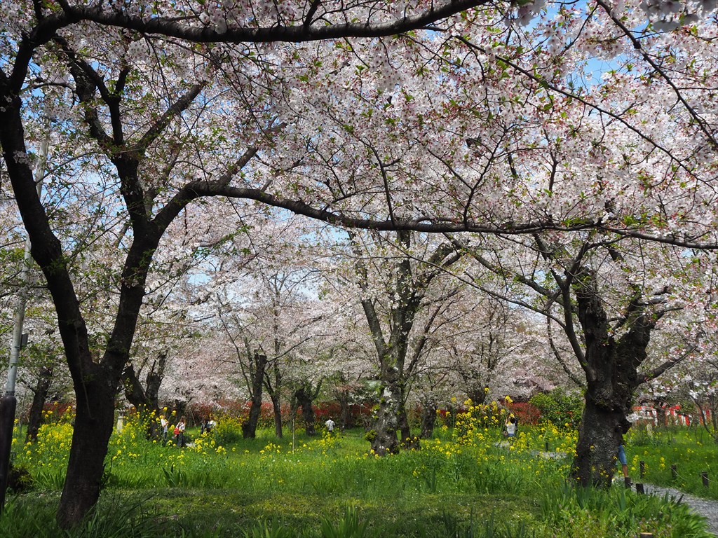 ソメイヨシノは桜吹雪で有料エリアには菜の花も咲いて、とても美しかったです。7日の雨で見ごろは終了となりそうですが、最後に見事な光景を目にすることができました。