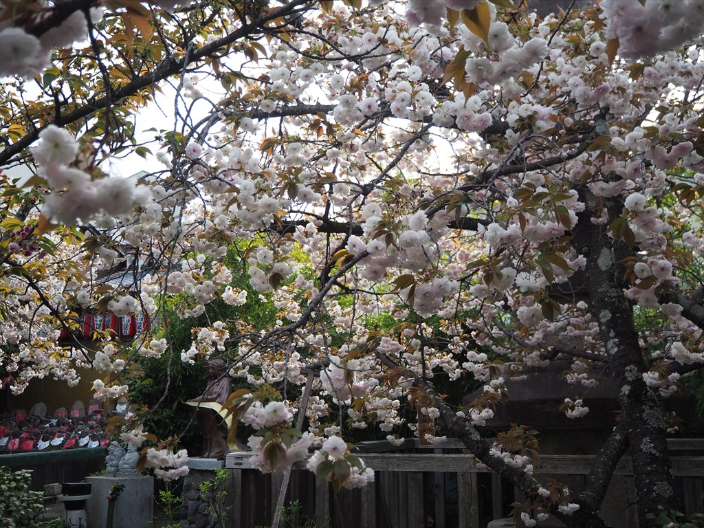 千本ゑんま堂(千本閻魔堂:せんぼんえんまどう)で、遅咲きの普賢象(ふげんぞう)桜が見ごろを迎えています。