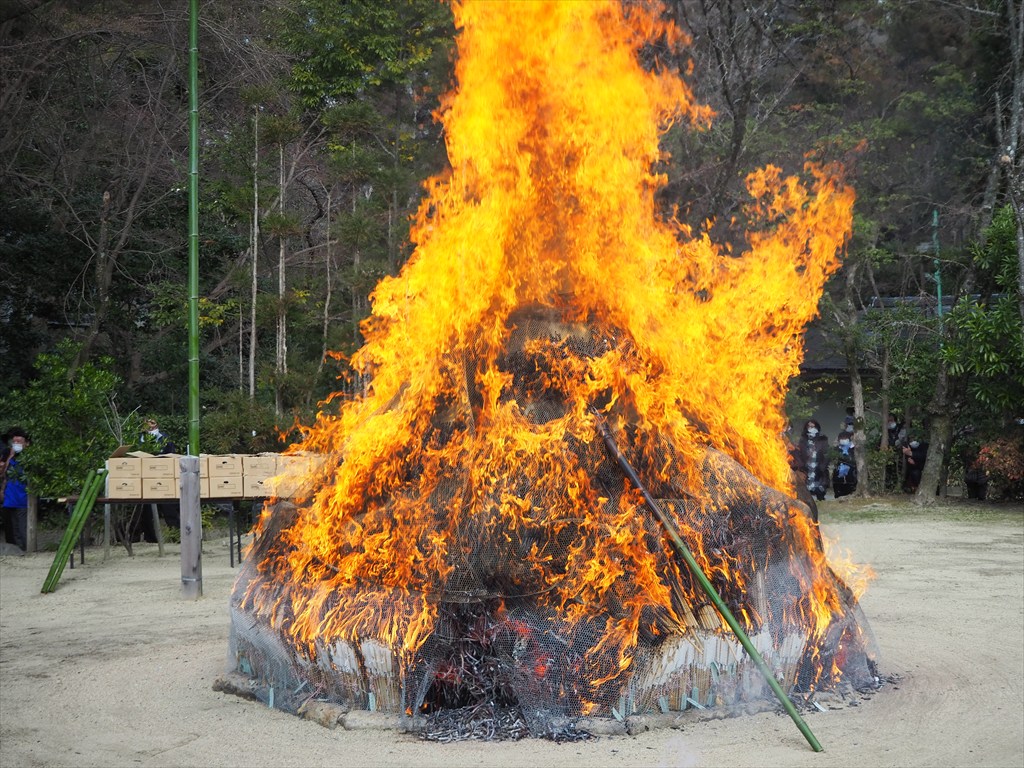 1月19日には石清水八幡宮(いわしみずはちまんぐう)の厄除大祭・焼納神事が行われ、勇壮な炎が上がり、厄除餅が授与されます(先着、人数限定)。